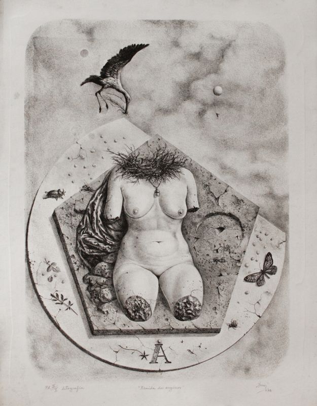 Talvez guiado por um olhar mais que atento à produção de tom surrealista e fantástico, André admirava a obra de Araujo e sua potente liberdade, tanto nos conteúdos figurativos como nas soluções formais que o artista apresentava. Apesar disso, a isolada individual que o artista realiza na galeria, em 1981, traz uma faceta menos conhecida de Araújo. O Desenho e o Feminino tem texto de Jacob Klintowitz e apresenta trabalhos gráficos acerca da figura feminina feitos com materiais como o grafite, a sanguínea e o carvão.