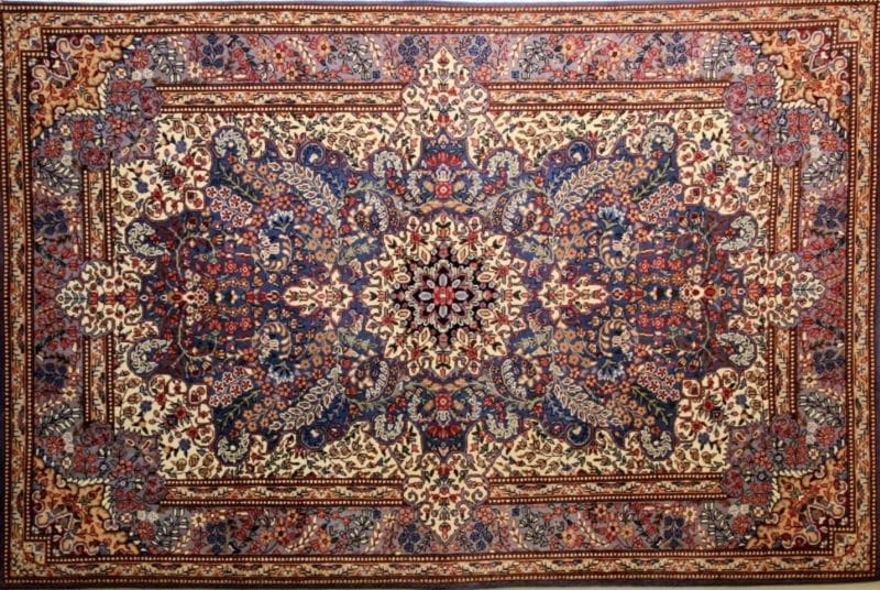 O primeiro tapete de que se tem evidência tem cerca de 2500 anos, o tapete Pazyryk, encontrado na Sibéria, produzido no período Aquemênida. Inicialmente utilizados para proteger do frio, posteriormente como tapete e a partir do século XVI adquiriu status de obra de arte.